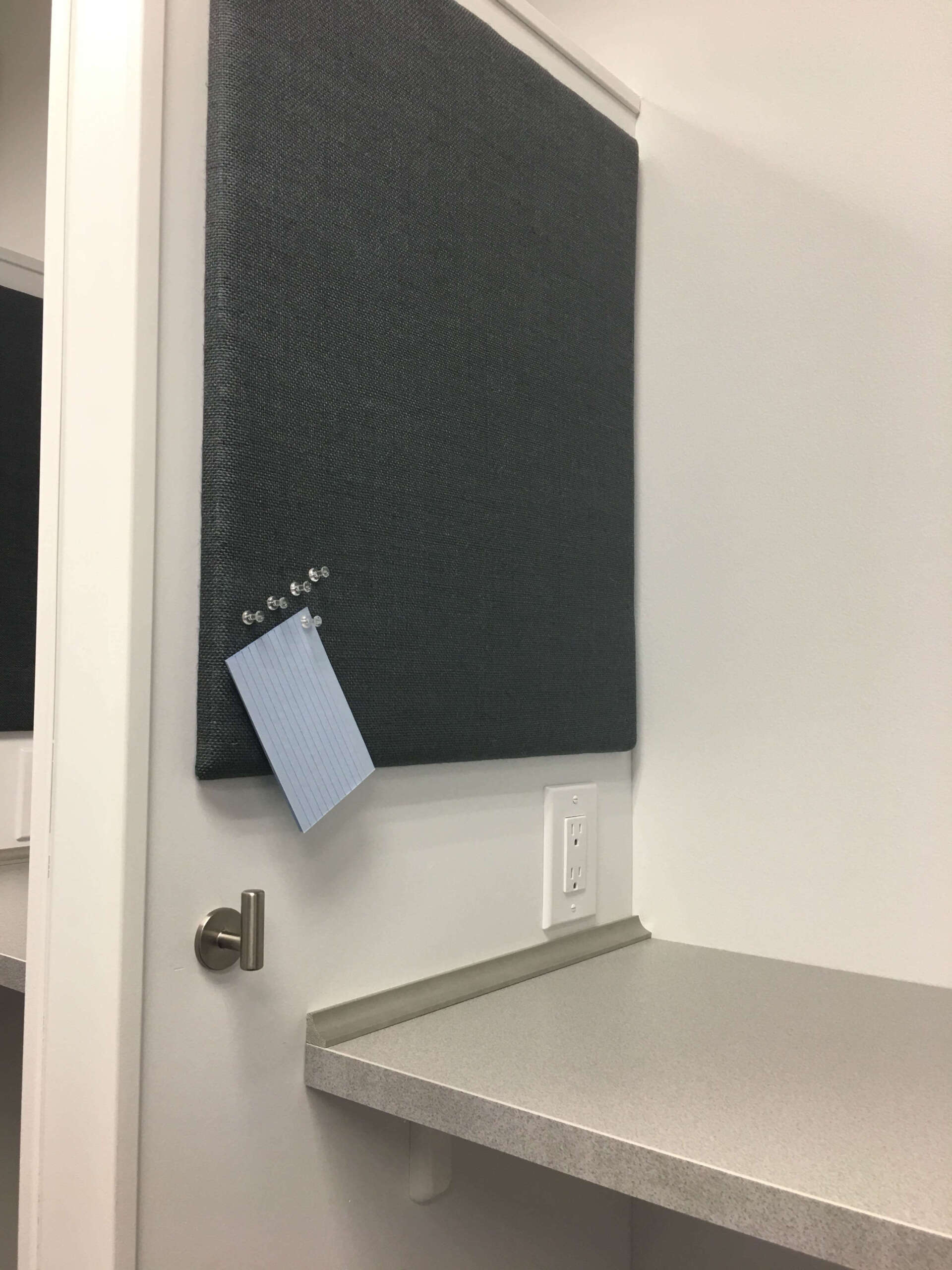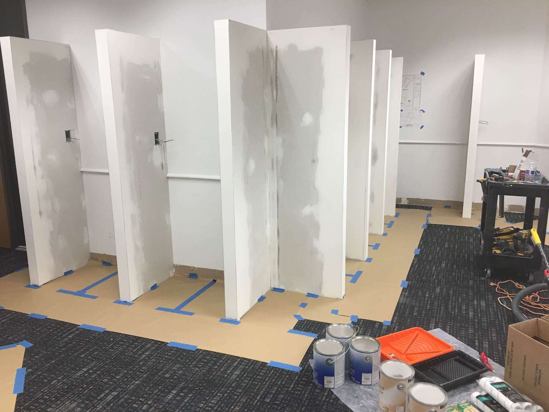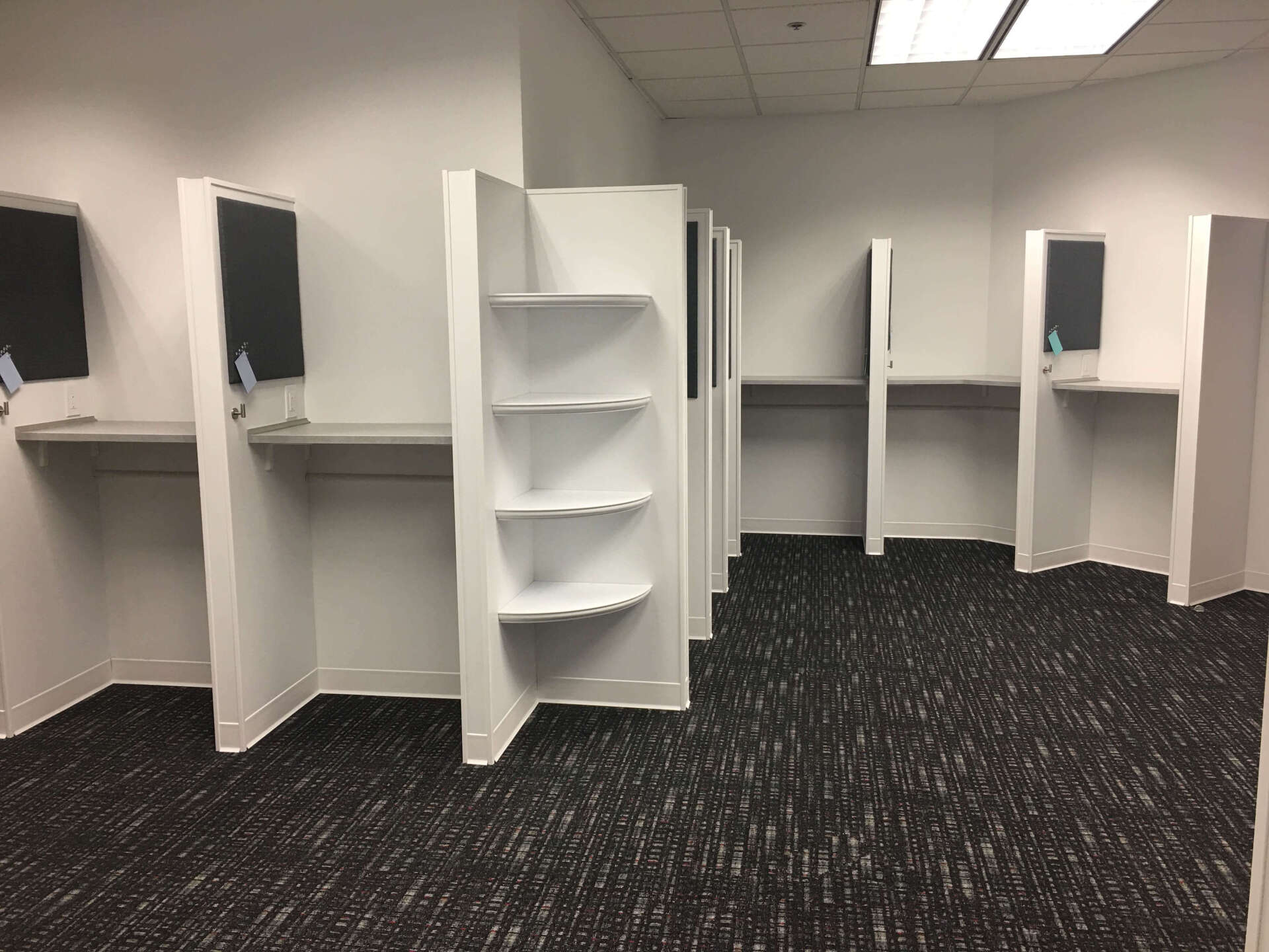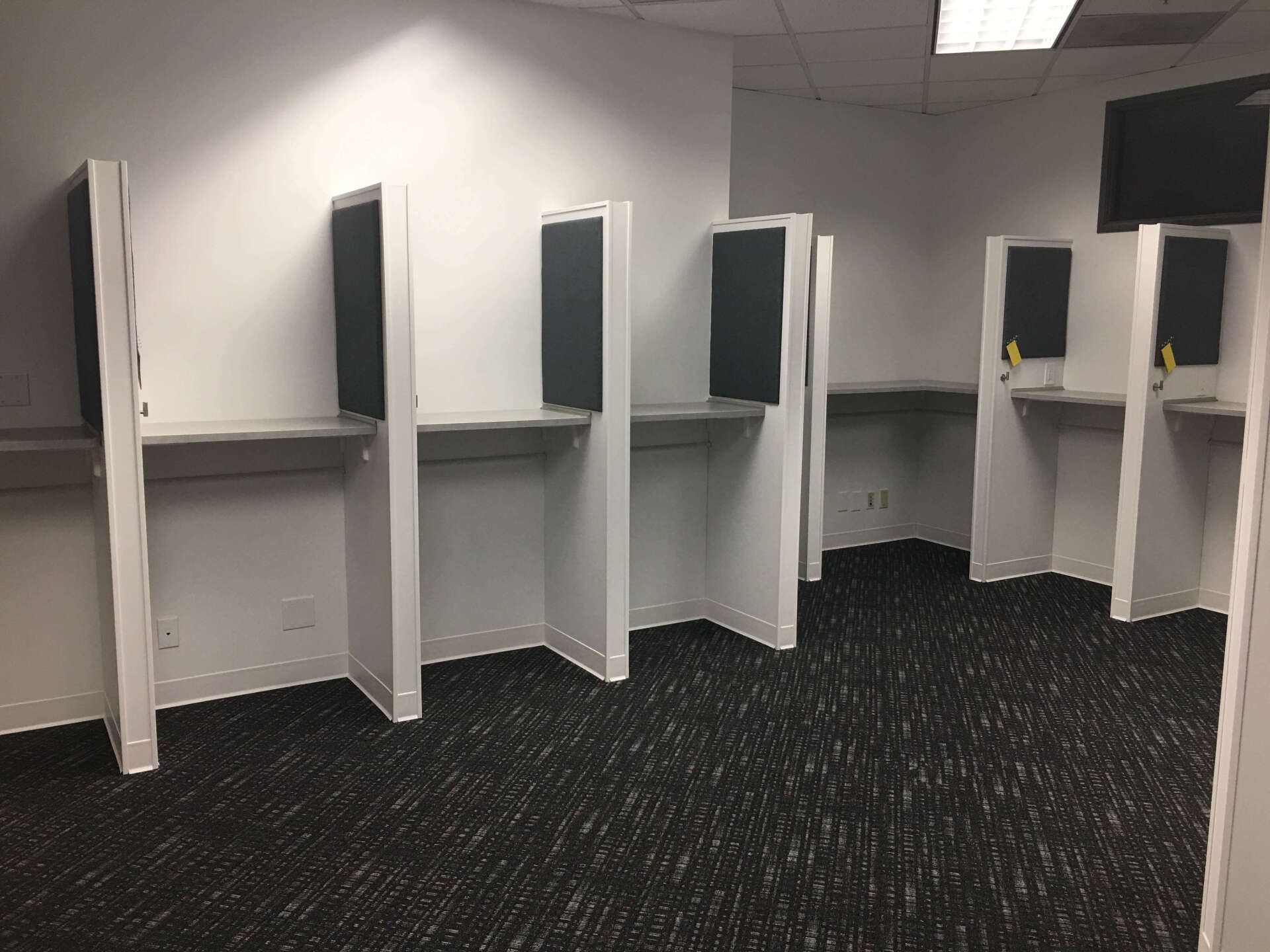 This project was the design and construction of a custom stationary space with acoustical panels which were placed on each station to reduce noise and echo up to 67% in the entire room.